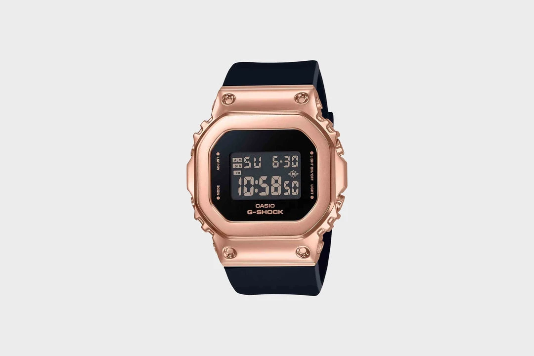 Introducing the new compact G-SHOCK models that are great choice for women who prefer the active G-SHOCK styling. This iconic square design of the 5600 Series is now equipped with a metal-covered bezel. All the shock resistance of the GM5600 in a smaller size for a lightweight and comfortable fit to the wrist.