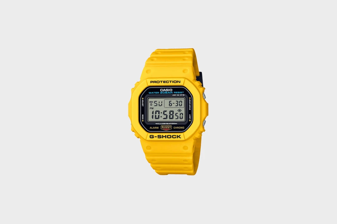 G-SHOCK first revolutionized timekeeping with its innovative toughness back in 1983. The DW5600REC-9 recreates the First Yellow (1987) color G-SHOCK watch that was sold outside of Japan. This model has a gold LCD, which is similar to the one used in the original design.