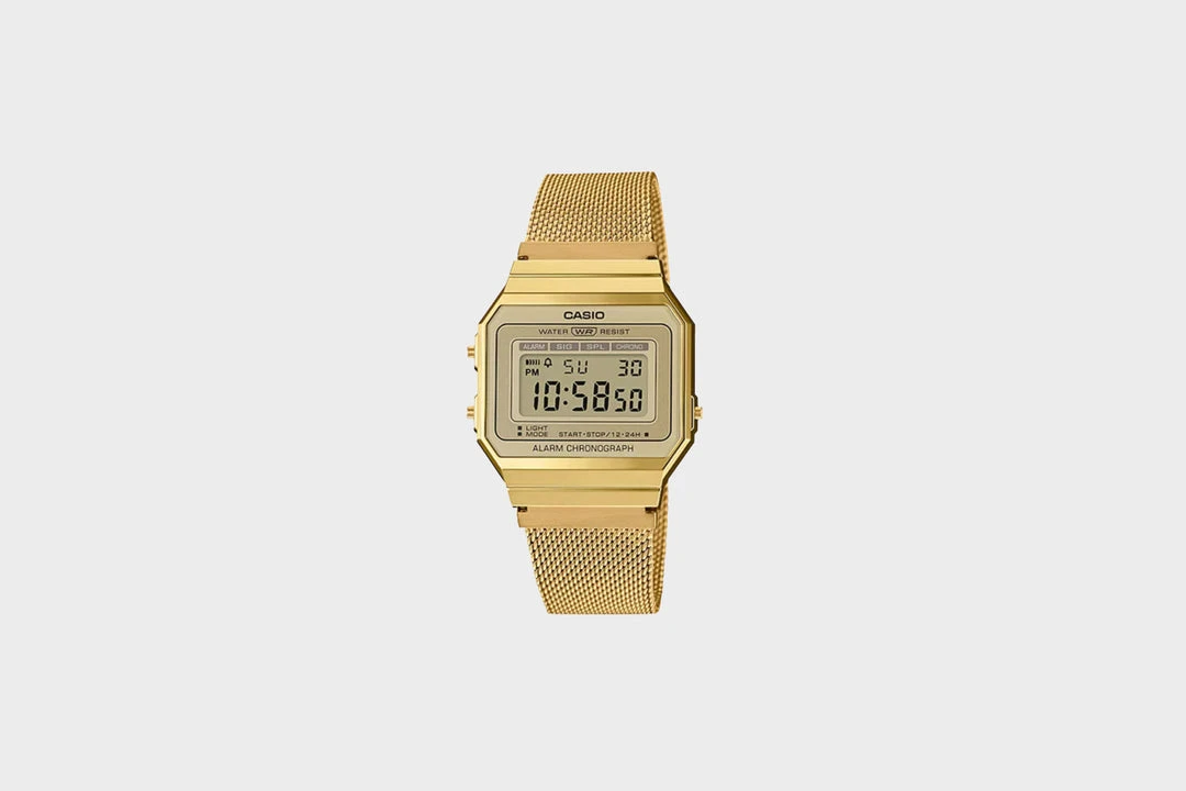 Casio Vintage A700 with mineral glass, Milanese band, LED light, and daily alarm