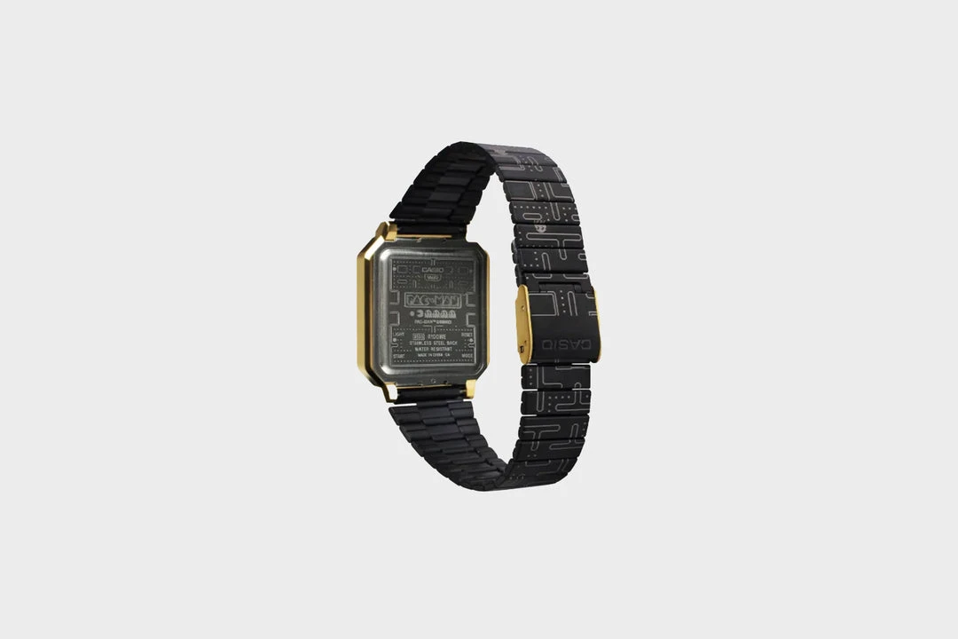 Welcome PAC-MAN into your life with this special Casio Vintage and BANDAI NAMCO Entertainment Inc. collaboration. Don’t miss this opportunity to add the very special A100 to your collection. Immerse yourself in the nostalgia of one of the world’s first blockbuster video games. Details on the watch glass hint at the exciting chase about to unfold as PAC-MAN, surrounded in the square LCD display ghost house, is poised to start running.