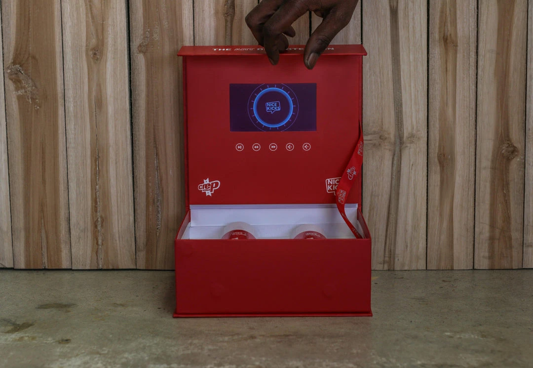 Introducing a collaborative pack that is available now, this boxset features a video player with USB capabilities along with two canisters of the unique Crep Protect formula that helps repel rain and stains. Featuring a red hue, along with a red push top, each canister contains the NK speech bubble logo along with various and unique word-marks along the packaging.