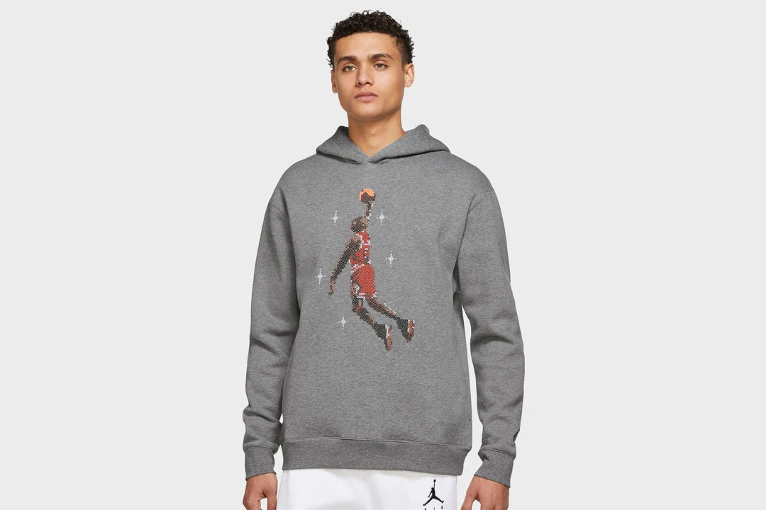 Give the gift of Jumpman this holiday season with the Jordan Essentials Hoodie. It’s made from French terry fabric that’s softly brushed, with a hood for extra coverage. A stylized Michael Jordan graphic is highly pixelated to look like a knit sweater.
