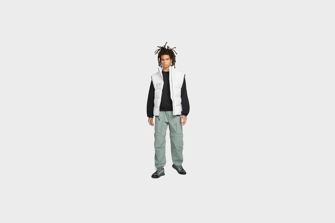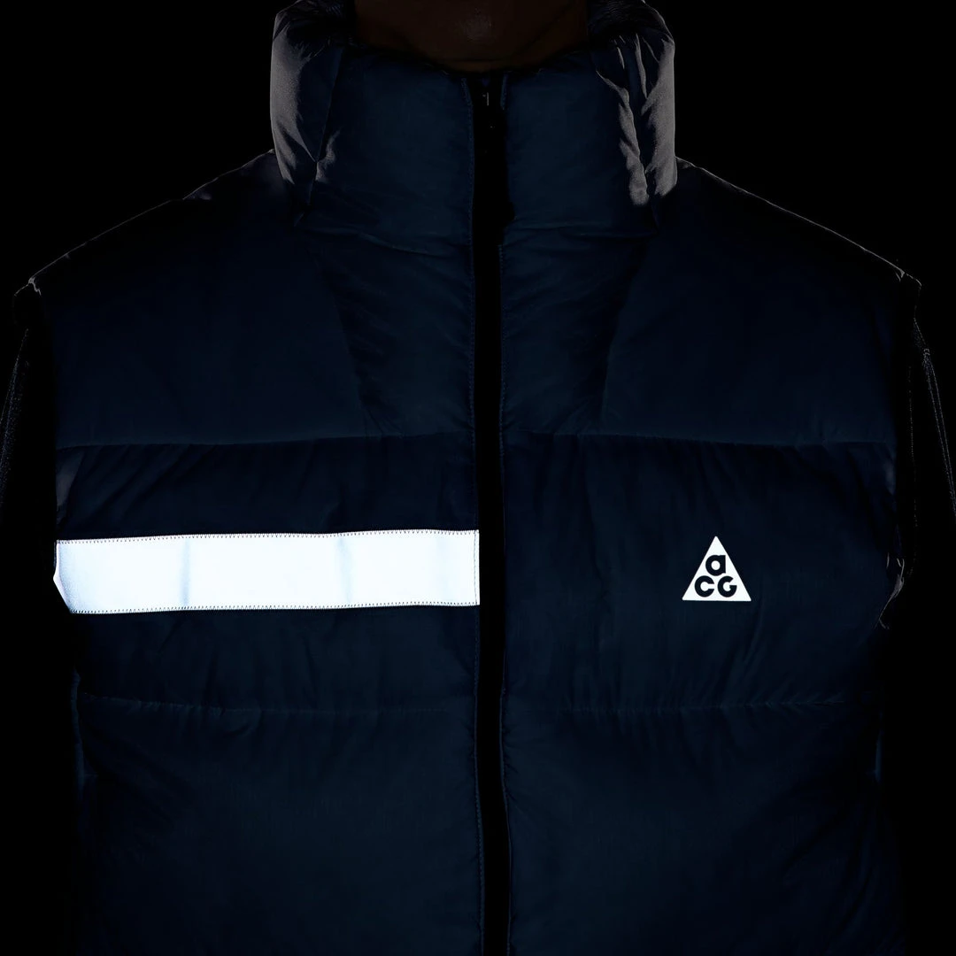 ACG apparel is designed as a nesting system, so you can adapt and adjust to the climate around you. This vest was made to wear over your base, fleece and mid layer. Go with your normal size for layering. If you want a trimmer fit, we recommend sizing down.