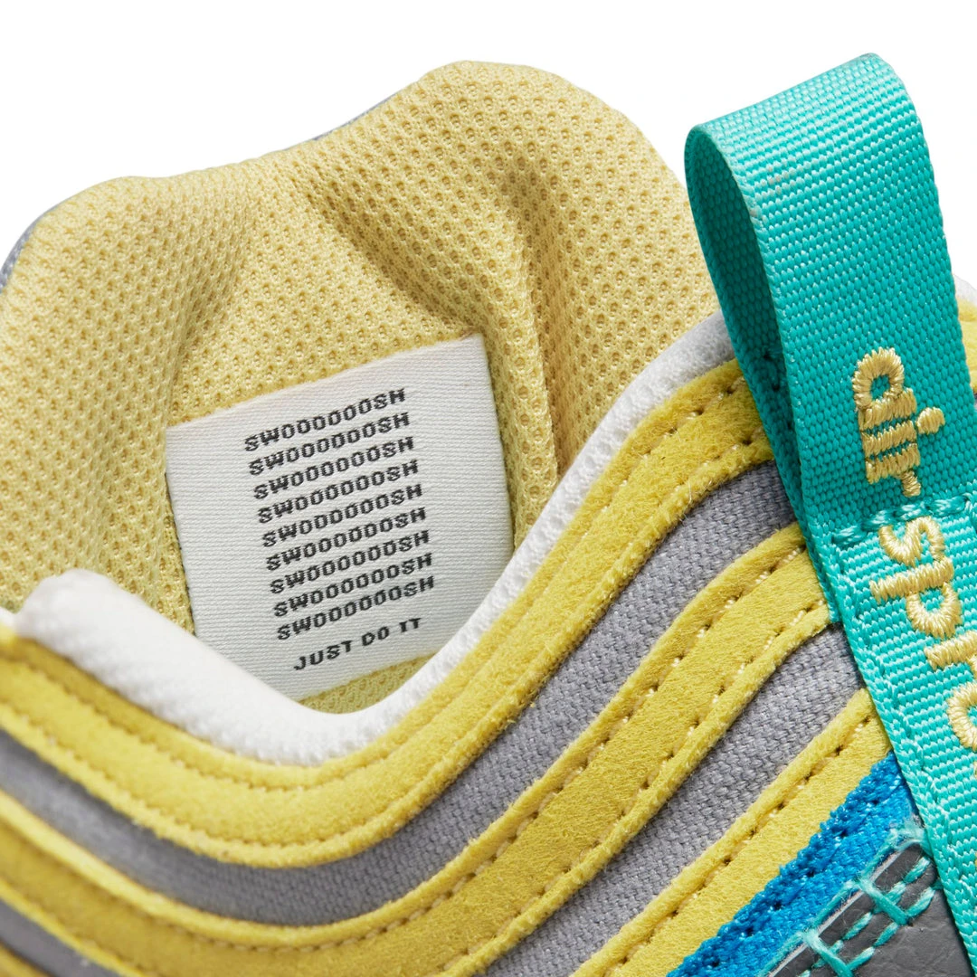 Blooming with springtime details, this edition of the Air Max 97 is all about new beginnings—including some materials that are getting a second life through recycling. Made from at least 20% recycled materials. Classic canvas underlays keep it airy, deco stitching energizes the look and embroidered graphics keep your style fresh as a spring daisy.