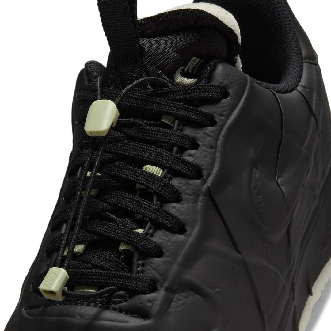 Seal the deal. Keeping everything you love best about AF1 style, we added a vacuum-sealed treatment for a 1-of-a-kind finish you’ll want to show off. The crisp, all black upper is easy to style while the glow in the dark outsole lets your night life shine.
