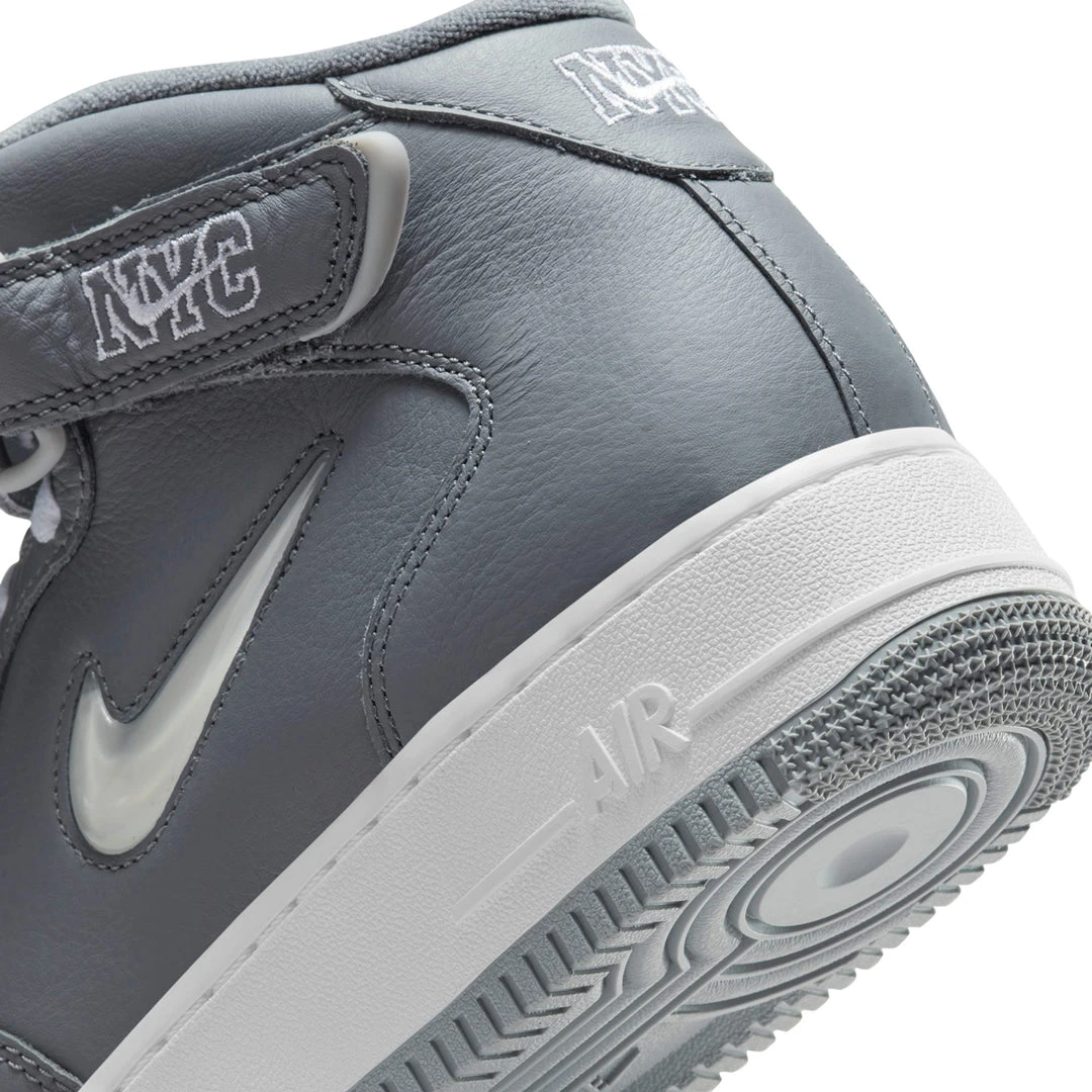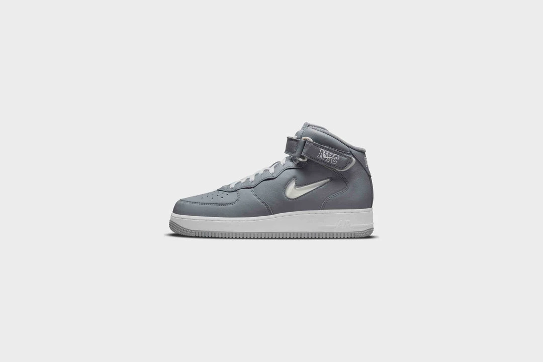 If you were walking through New York City in the late ’90s or early ’00s with a pair of Cool Grey and jewel Swoosh Air Force 1s, you were probably turning the most heads on the block. Coming in many different flavours and styles, the Air Force 1 ruled the city’s sneaker culture at that time, and to celebrate that legacy, this makeup is here to bring back the vibes. With a much-loved Cool Grey upper, Metallic Silver jewel Swooshes and an OG shape, this special edition ‘NYC’ Air Force 1 Mid Jewel celebrates the city, its style and all sneaker-loving New Yorkers.