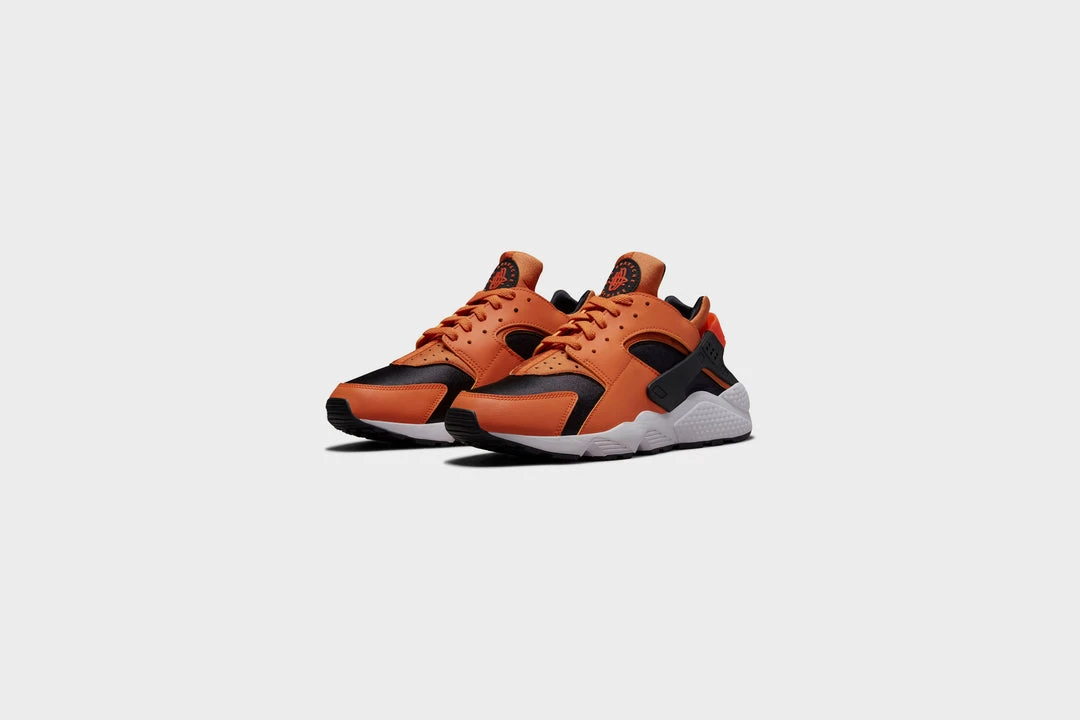 This version of the Nike Air Huarache brings back a street-level favorite in classic neutrals enlivened with pops of orange. Soft leather accents on the upper mix with super-breathable, neoprene-like fabric for easy styling. Its iconic heel clip and stripped-away branding keep the early-’90s look that inspired this update.
