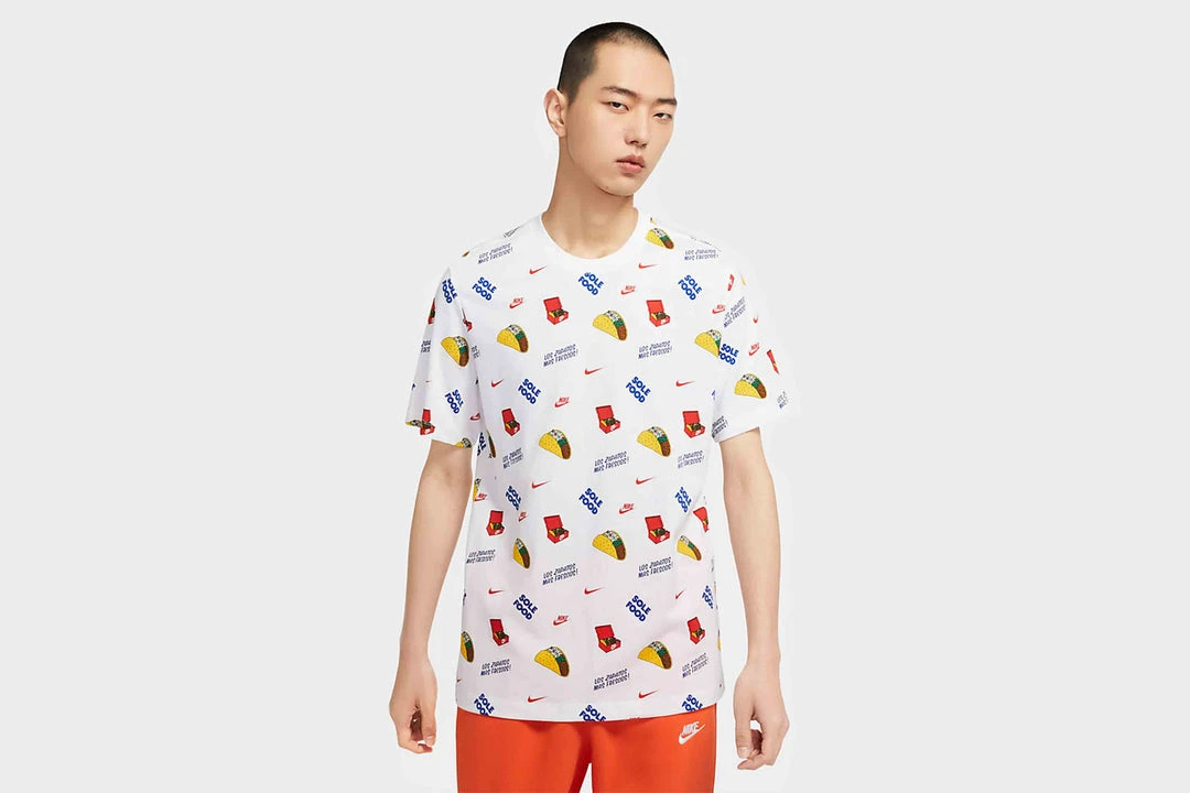 The Nike Sportswear T-Shirt features soft cotton for all day comfort and an all-over, mouth watering graphic.