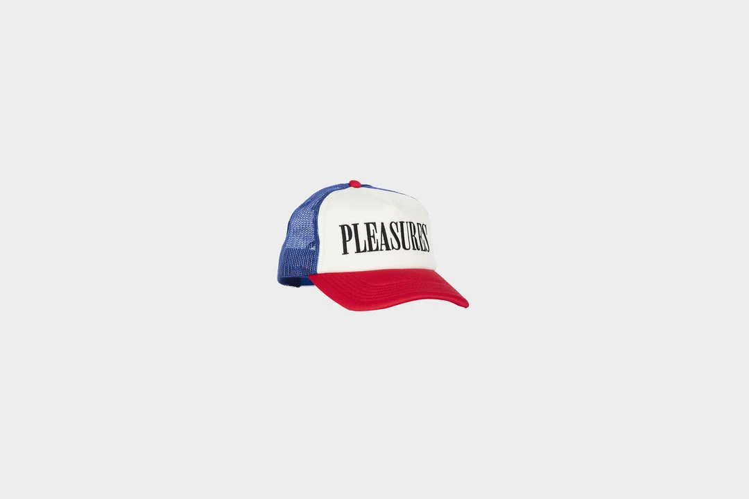Pleasures Lithium Trucker Cap in Red, White, and Blue