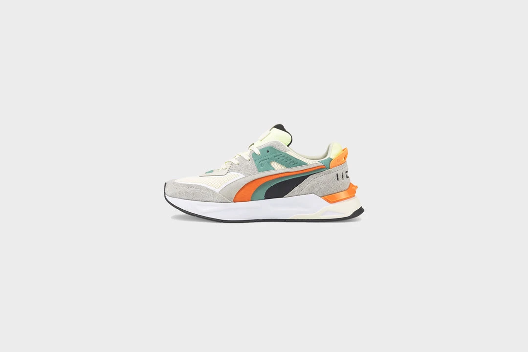 Crafted of suede and mesh, the Mirage Sport Layers features a lace-up vamp, an almond-shaped toe, and a uniquely layered suede lateral Puma logo.