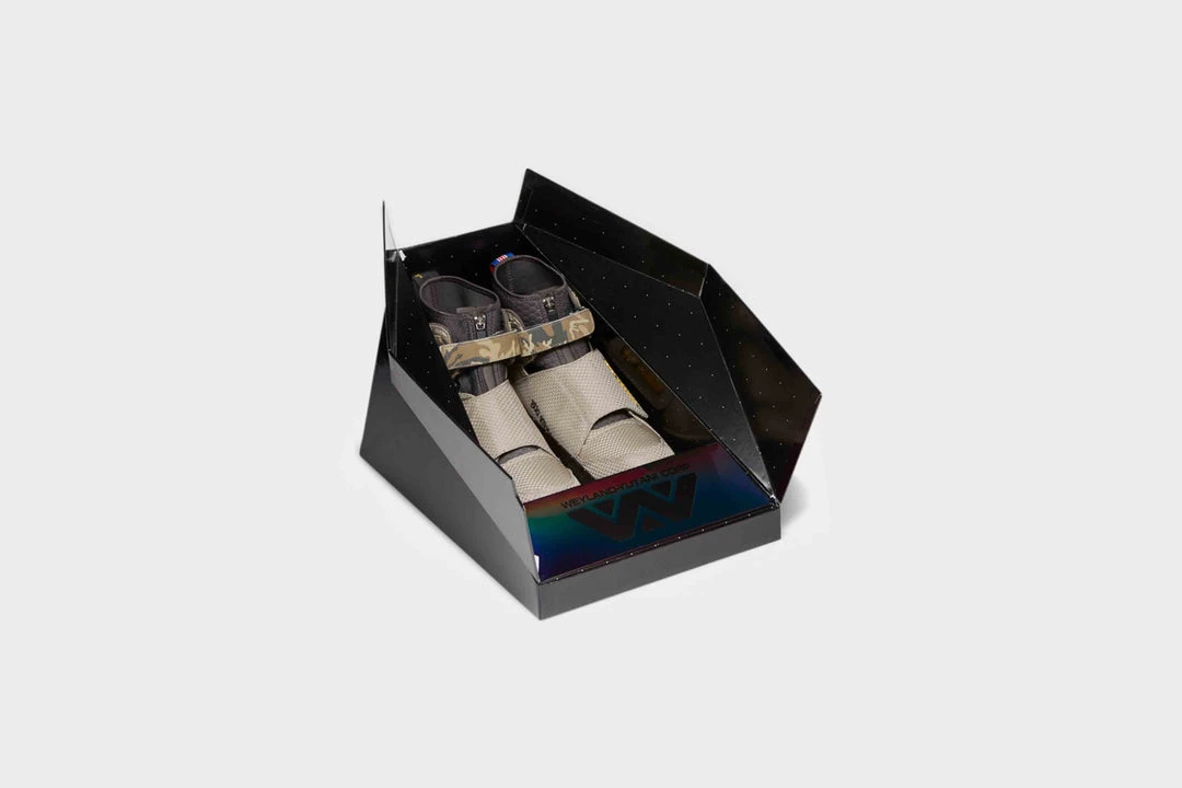 Named the Alien Stomper ‘Bug Stomper’, the sneaker is inspired by the United States Colonial Marines uniforms and ships. A brand new feature is the booty, which comes with a zipper and replaces the traditional tongue. The shoe features a ballistic nylon upper, and the iconic Reebok window has been replaced by a durable molded rubber label featuring the Weyland-Yutani logo. The back of the shoe is covered in a unique camouflage pattern, taken from the Marines’ fatigues. “It’s not a camo you can find anywhere,” Hill says. “Throughout the research process we found that the costume designer for the movie took an existing camo and tweaked it for the movie to make it a 1-of-1. So we duplicated that 1-to-1. “