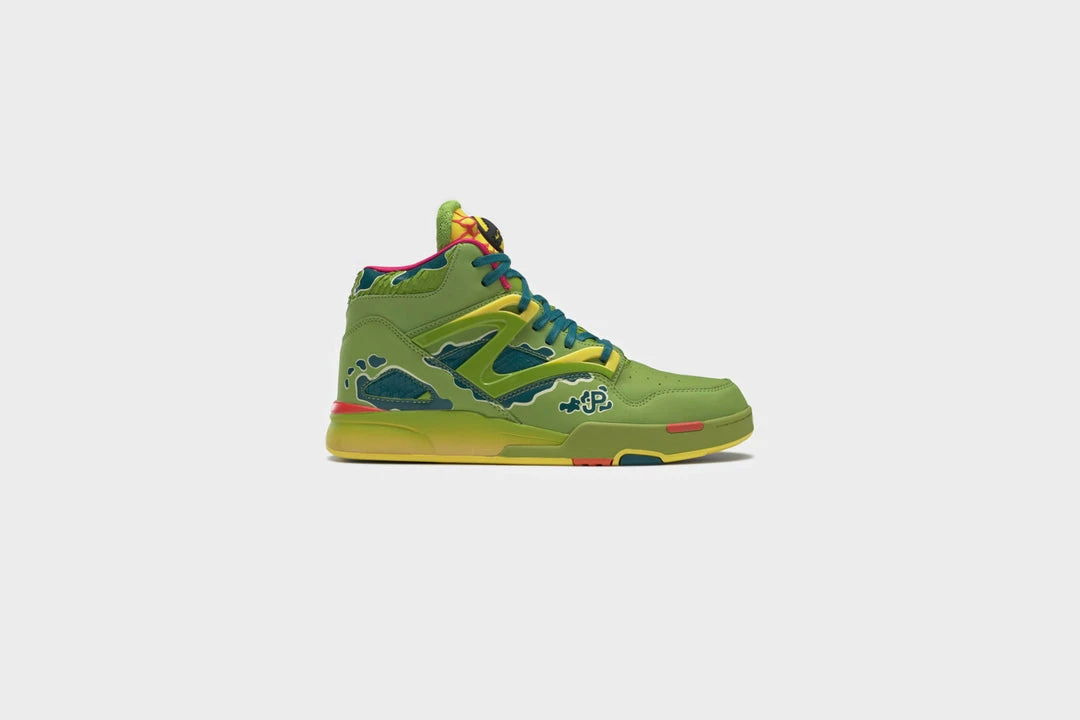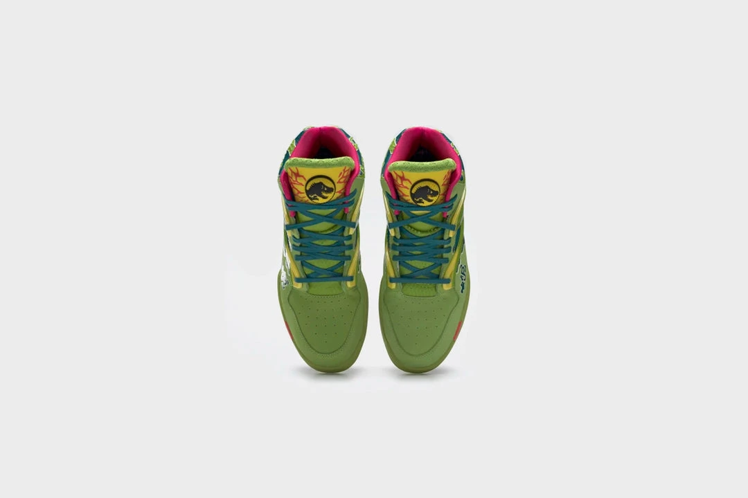 The Dilophosaurus made a popular debut in the first Jurassic Park movie and became a breakout star. Let the world know the colorful, poison-spitting dinosaur is your fave when you wear these Reebok Jurassic Park Pump Omni Zone II Shoes. Inspired by the iconic dinosaur, the shoes have a nubuck upper with hits of leather. Graphics on the upper nod to the dinosaur’s markings, and the tongue details refer back to its crests.