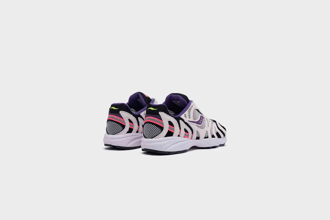The latest incarnation of Saucony’s reborn Grid Azura 2000 is inspired by vintage Bozozku street and long nights out in Tokyo on the Grid Azura 2000 “Tokyo Mornings”. The lightweight runner uses recycled multicolor woven lace in the underlays, giving off a vibes of washed out neon lights seen on a blurry “morning after,” layered with translucent mesh and phantom white suede overlays in a tiger stripe pattern. Black suede and pink neon accents balance the composition, while reflective taping, a white foam midsole featuring neon GRID technology, and a black, white, pink and purple rubber outsole caps off the design.
