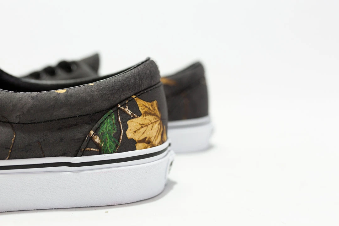 Vans and renowned pattern maker Realtree, who has become synonymous worldwide with camouflage, have teamed up on this woodland-inspired collection. Featuring Realtrees iconic prints, the Realtree Xtra® X Vans Era combines the Vans classic low top skate shoe with sturdy textile uppers, metal eyelets, padded collars for support and flexibility, and signature rubber waffle outsoles.