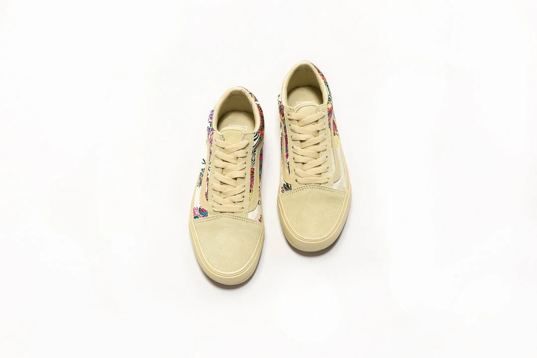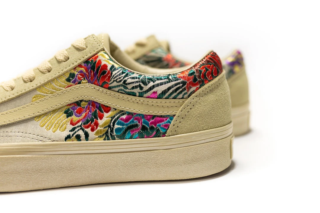 The Festival Satin pack brings a California edge to time-honored floral satin brocade textiles by offering lush satin finishes and ornate details. Featuring the perfect amount of shine and opulence, the Festival Satin Old Skool includes textile and leather uppers, padded collars, elastic side accents, and signature rubber waffle outsoles.