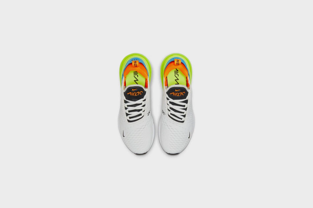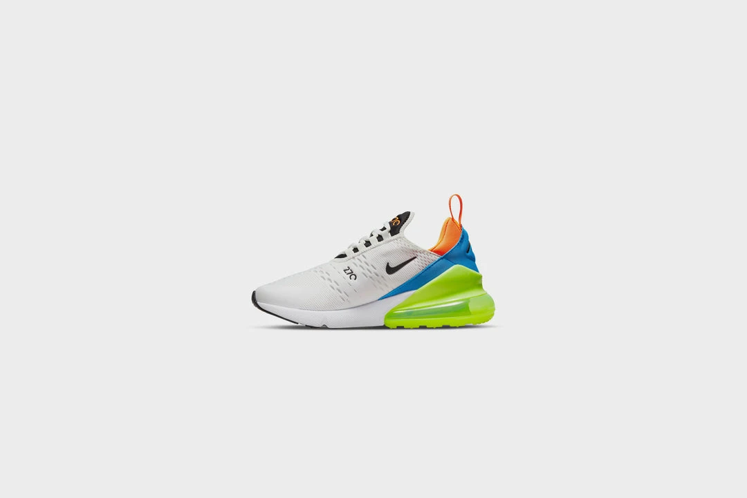 Enjoy the sleek design of the Nike Air Max 270 in a suite of cool, icy color blocking. An extra large Max Air unit provides ultra-plush cushioning under every step and a dramatic style statement, while the stretchy inner sleeve provides a snug, sock-like fit that’s sure to keep you comfortable all day, every day.